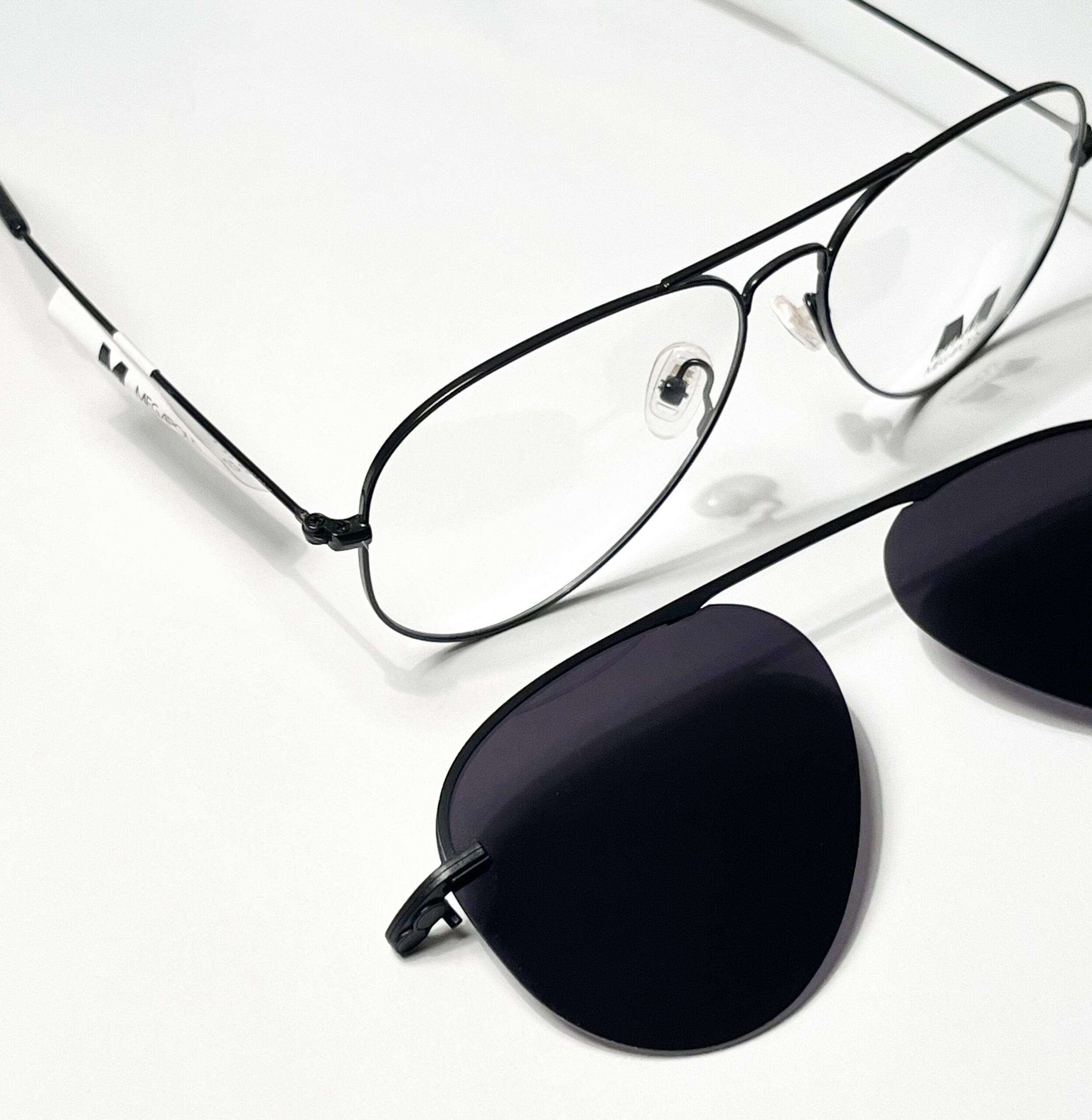 نظارة Clip-On من MEGAPOLIS بتصميم عملي وأنيق، إطار تيتانيوم أسود خفيف وقوي. توفر حماية ممتازة للعينين مع إمكانية التحويل السريع لنظارة شمسية، لتجمع بين الراحة، المتانة، والأناقة في كل الأوقات.